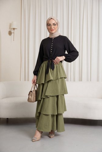 Pliseli Bağcıklı Etekli Jakarlı Gofre Takım Lacivert